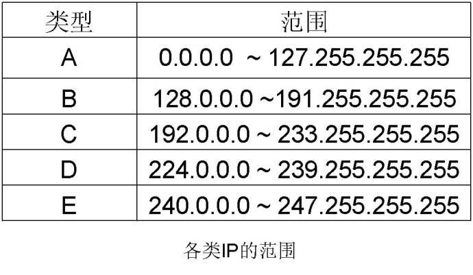 最初設計互聯(lián)網(wǎng)絡時,為了便于尋址以及層次化構(gòu)造網(wǎng)絡,每個IP地址包括兩個標識碼(ID),即網(wǎng)絡ID和主機ID,因此同一個物理網(wǎng)絡上的所有主機都使用同一個網(wǎng)絡ID,網(wǎng)絡上的一個主機,包括網(wǎng)絡上工作站,服務器和路由器等,都有一個主機ID與其對應。IP地址根據(jù)網(wǎng)絡ID的不同分為5種類型,A類地址、B類地址、C類地址、D類地址和E類地址。