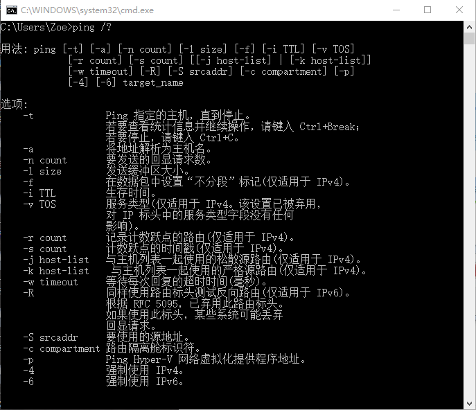 4) -iTTL 指定發(fā)送回響請求消息的IP標(biāo)題中的TTL字段值, Windows XP系統(tǒng)主機(jī)默認(rèn)值一般是128,TTL的最大值是255。
